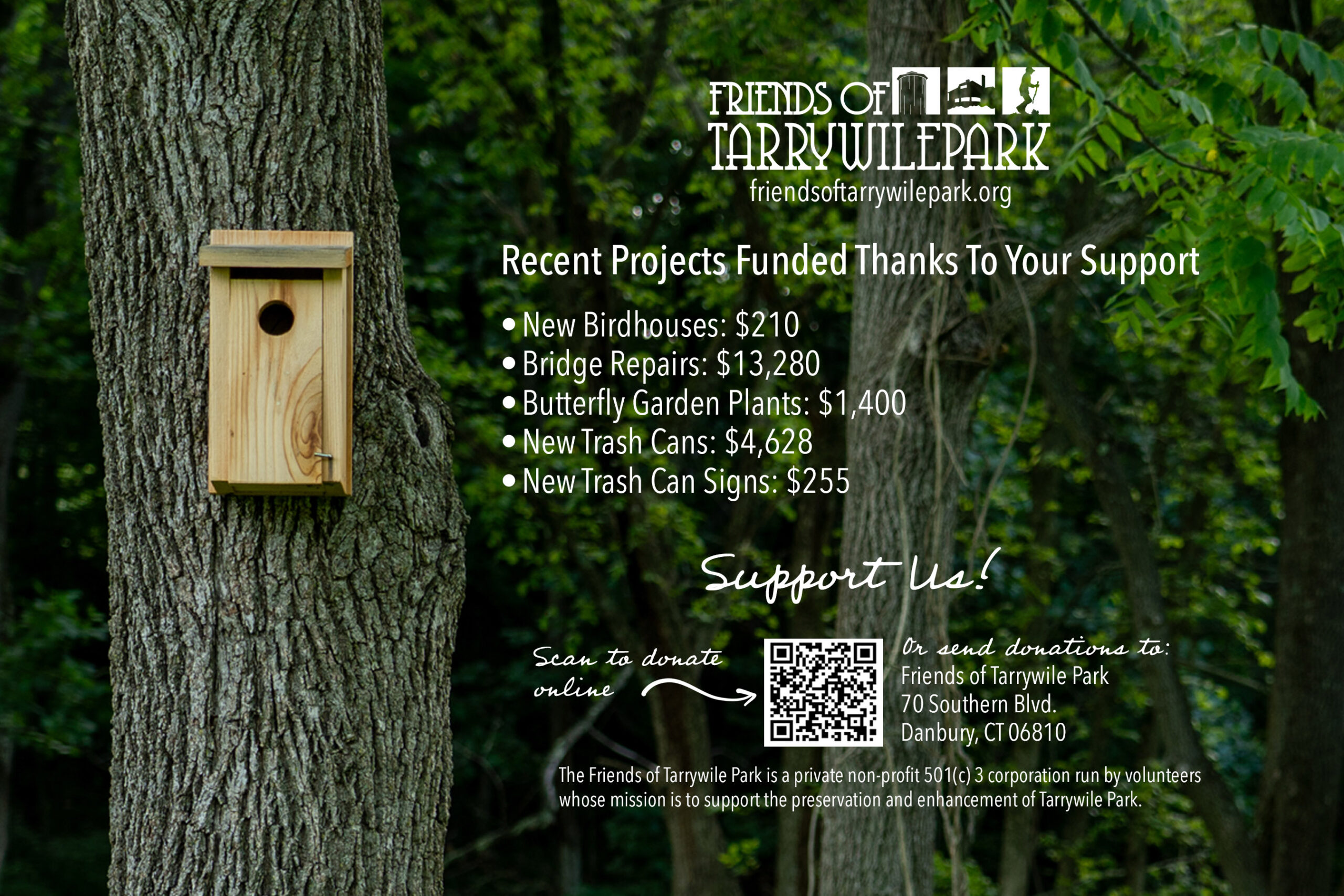 Download Donation Form or email us at info@friendsoftarrywilepark.org to request one.
